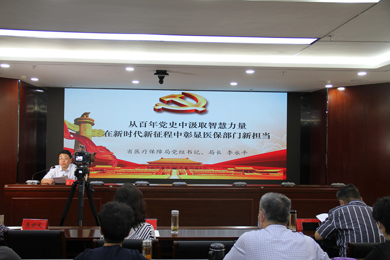 8月20日,省91论坛以中心组理论学习形式举行党史学习教育专题党课,局党组书记、局长李永平作“从百年党史中汲取智慧力量·新时代新征程中彰显医保部门新担当”专题党课。局机关全体干部职工参加。