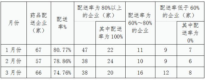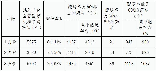 为进一步压实集采(挂网)药品生产企业供应保障的主体责任,确保医疗机构临床使用需求,督促配送企业及时响应医疗机构采购订单,提高配送时效,及时处理医疗机构反映的供应配送问题,对无法及时满足医疗机构采购需求、不按协议供应的医药企业,依据相关管理规定给予相应信用评价,现就关于全省第一季度配送药品情况进行通报如下。